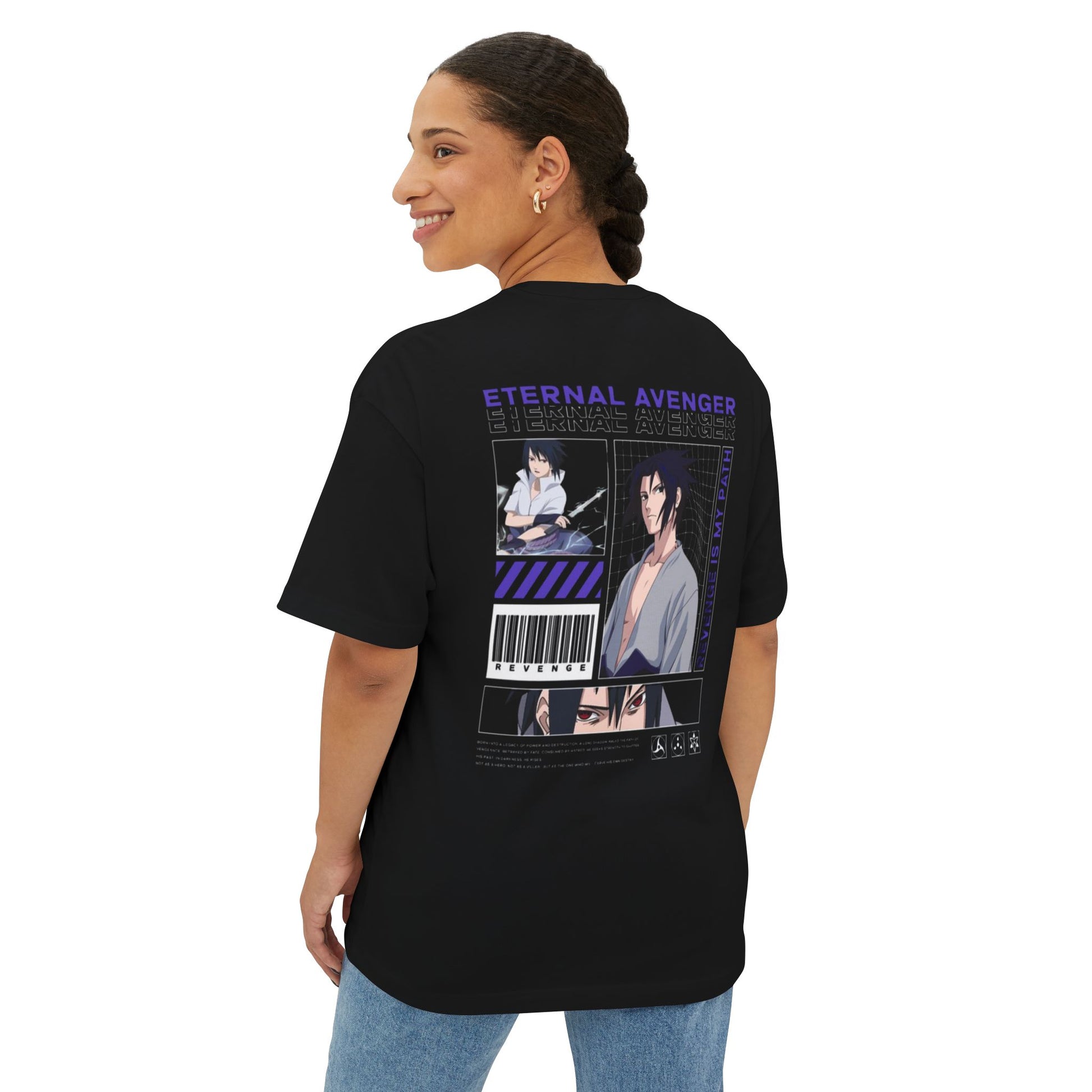 "Embrace vengeance and resolve with this oversized tee featuring Sasuke Uchiha: the Eternal Avenger. Showcasing his Sharingan power and cold determination, this back print design merges dark anime aesthetics with premium streetwear comfort — perfect for Naruto fans who walk the lone path of strength."
